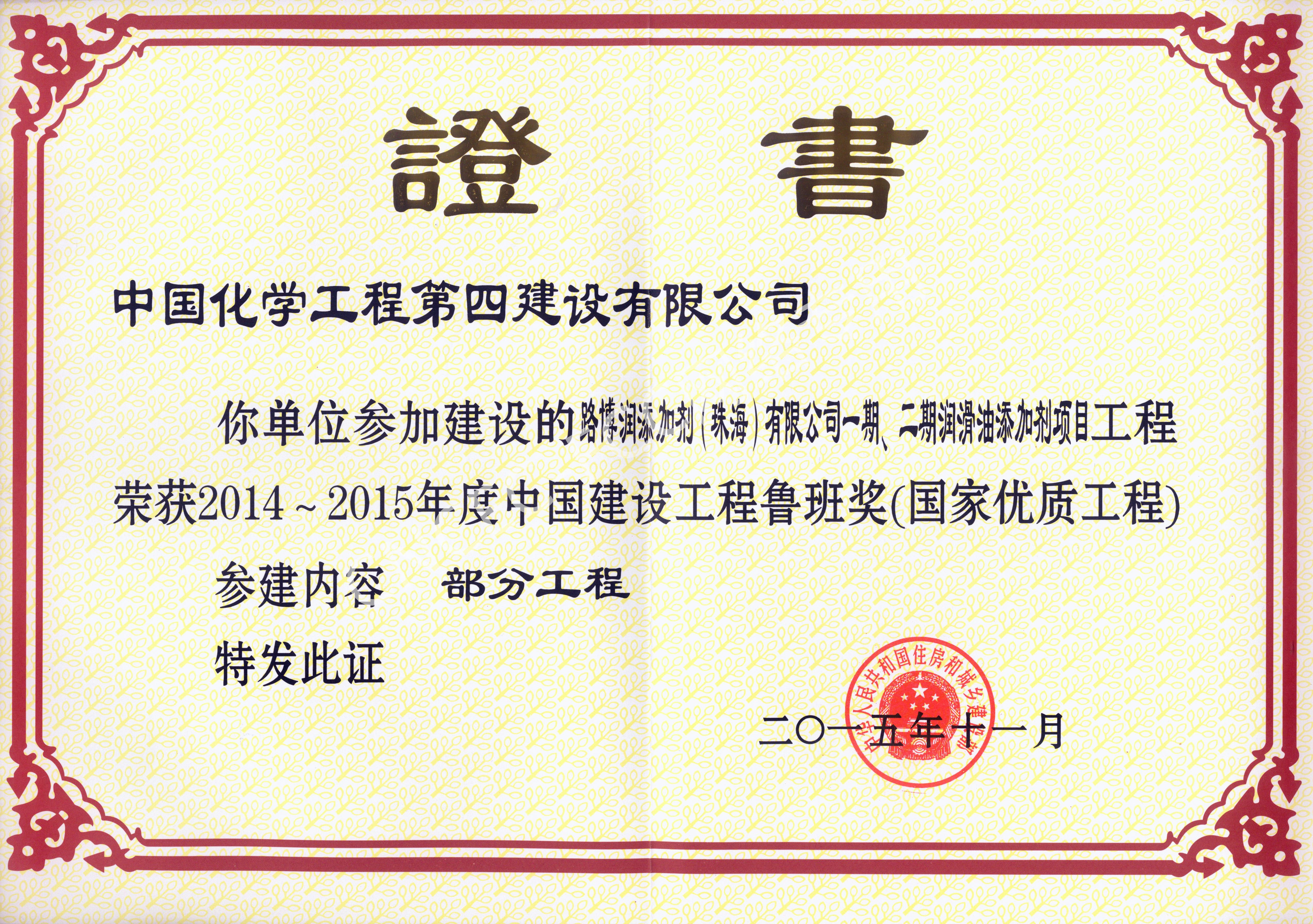 路博潤添加劑(珠海)有限公司一期、二期潤滑油添加劑項目中國建設工程魯班獎
