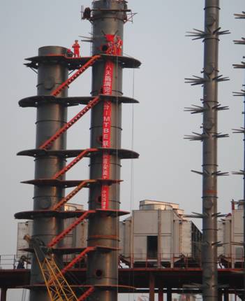 2009年8月26日下午8時許,四川大英縣盛馬化工股份有限公司1.5萬噸/年MTBE聯(lián)合裝置施工現(xiàn)場一片歡呼。由公司安裝制造分公司四川項目部承建的氣分-MTBE聯(lián)合裝置6臺主要塔器設(shè)備順利吊裝就位,為聯(lián)合裝置安裝工程奠定了完美的開端。