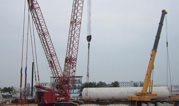 2011年12月21日,華東分公司成功吊裝普萊克斯(海南)中航三鑫PL-3XL機電設(shè)備。該項目從12月15日進(jìn)入設(shè)備吊裝安裝階段,項目部針對吊裝設(shè)備重量大、現(xiàn)場狹小實際情況,認(rèn)真組織工程技術(shù)和施工作業(yè)人員,制定了措施嚴(yán)謹(jǐn)施工組織方案。對參與吊裝的機械和輔助設(shè)施均認(rèn)真細(xì)致檢驗保養(yǎng),確保狀態(tài)良好。所有項目施工人員集中動員,分工明確、堅守崗位。投入使用400T履帶吊1臺、300T汽車吊1臺、50T及以下吊車3臺,各工種作業(yè)人員30多名。經(jīng)過連續(xù)7天的奮戰(zhàn),至2011年12月21日,將100T以上設(shè)備6臺(其中1臺冷箱為140T,高40m)和其他設(shè)備共24臺,全部按計劃時間安全吊裝就位,得到了業(yè)主的高度好評!