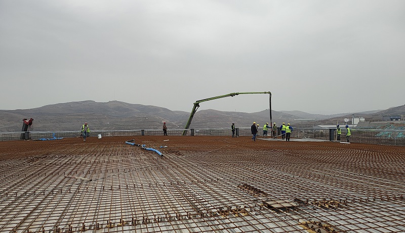 該后處理裝置高40米、寬42米,是聚甲醛項(xiàng)目最高單體工程。面對(duì)施工現(xiàn)場(chǎng)天泵受高大跨度和場(chǎng)地限制、混凝土澆筑危險(xiǎn)因素多、施工難度大等不利因素,項(xiàng)目部積極與設(shè)計(jì)代表溝通,在樓頂進(jìn)行優(yōu)化組織施工,既保證施工安全又提高了施工效率。經(jīng)過項(xiàng)目施工人員日夜接續(xù)奮戰(zhàn),圓滿完成了此次封頂施工任務(wù)。