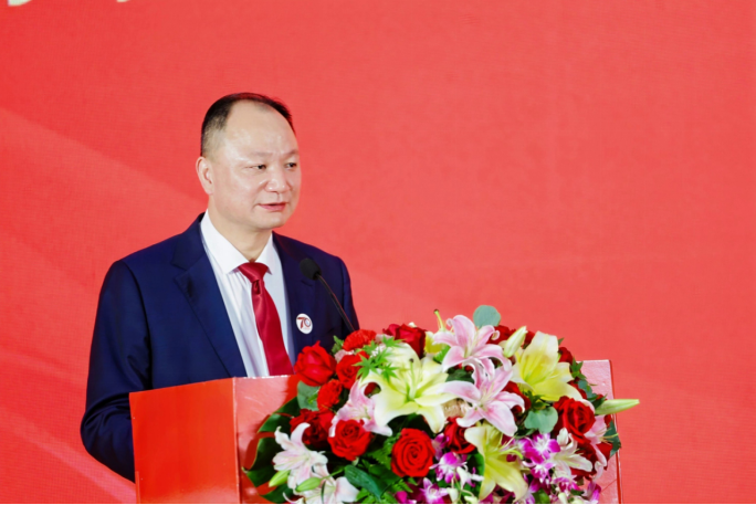 周鴻在致辭中回顧了公司70年來的光輝歷程、輝煌成就和寶貴經驗。他指出,1954年5月,在時任政務院副總理兼國家財經委主任陳云的簽署批準下,公司在廣州市應運而生;1969年公司響應國家三線建設的號召,北遷到岳陽市。從珠江之濱到洞庭湖畔,從大江南北到世界各地,公司七十年氣勢恢宏、波瀾壯闊的歷史大幕便由此浩然開啟。公司七十年歷史,是一部四化建人艱苦卓絕、開疆拓土的創業史,創新求變、引領潮頭的發展史,價值創造、百煉成鋼的成長史,勇擔責任、回報社會的奉獻史。70年來,公司在全國各省、市、自治區建設大中型工程項目3000多個,參與“一帶一路”沿線10多個國家以及香港特別行政區的項目建設,先后榮獲中國建筑工程魯班獎、國家優質工程金質獎等200多個工程獎項,獲得“全國優秀施工企業”“全國技術創新先進企業”和“全國五一勞動獎章”等榮譽稱號,被行業和媒體譽為“化建湘軍”,為構建國家化學工業體系、促進經濟社會發展做出了突出貢獻。
