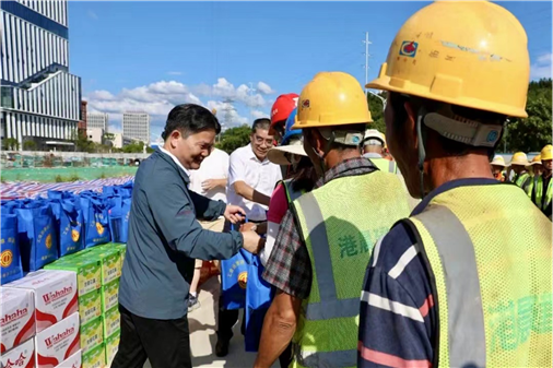 “伏天已至,感謝大家在高溫下堅(jiān)守崗位,你們辛苦啦。”在項(xiàng)目建設(shè)現(xiàn)場,劉再衡向大家送上防暑降溫物品,詳細(xì)詢問職工們的工作情況,了解項(xiàng)目部防暑降溫和安全保障措施,再三叮囑管理人員和職工要合理安排作息時間,做好防暑降溫措施,確保大家工作開開心心、平平安安。希望職工們增強(qiáng)自我保護(hù)意識,做到勞逸結(jié)合,用良好的身心狀態(tài)來確保項(xiàng)目圓滿完工。