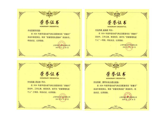近日,上海華誼工業(yè)氣體有限公司召開合成氣供應(yīng)及配套項目“質(zhì)量月”活動總結(jié)大會,華東公司華誼項目部獲評質(zhì)量先進集體,項目部職工趙煥新、朋志林分別獲評質(zhì)量管理先進個人一等獎和三等獎,項目部循環(huán)水土建大班組獲“質(zhì)量優(yōu)秀班組獎”。