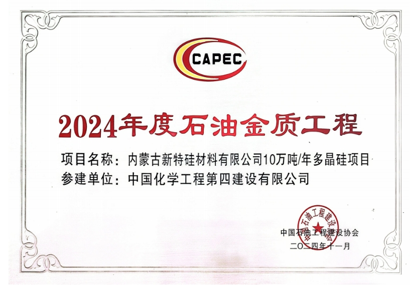 西部公司內蒙古新特硅材料項目獲評2024年度石油金質工程