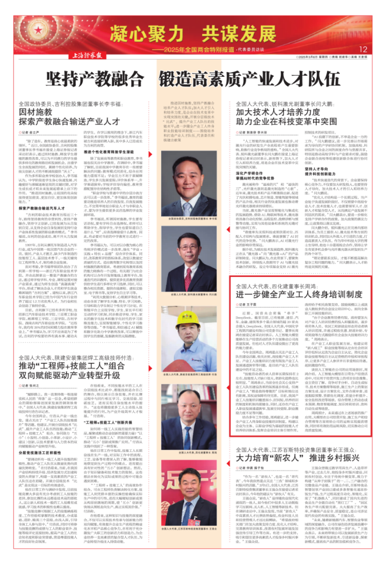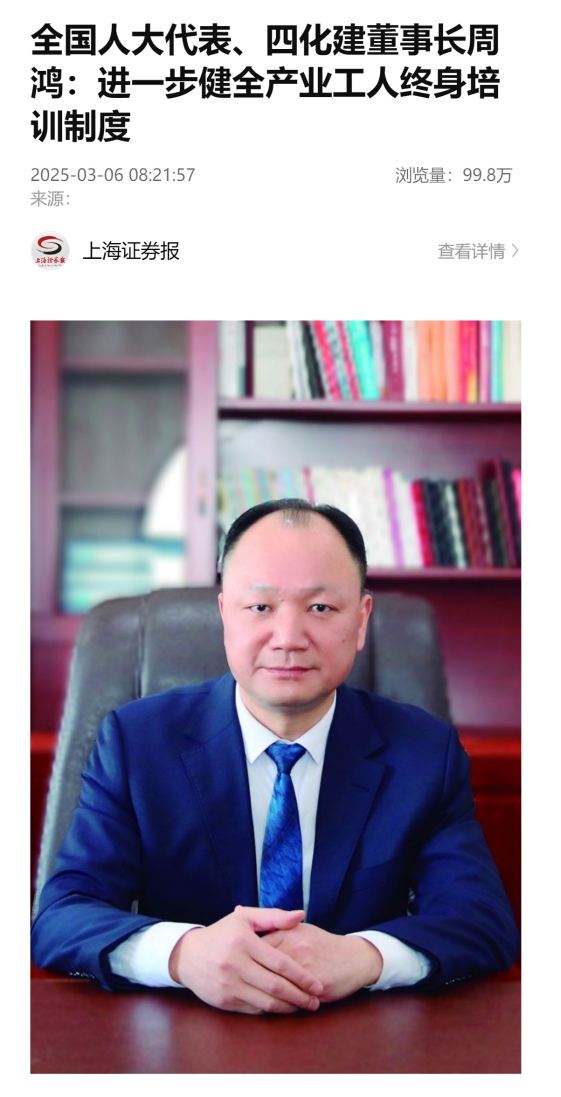 3月6日,證券時報客戶端以“堅(jiān)持產(chǎn)教融合 鍛造高素質(zhì)產(chǎn)業(yè)人才隊(duì)伍”為題報道周鴻的建議:進(jìn)一步健全產(chǎn)業(yè)工人終身培訓(xùn)制度。