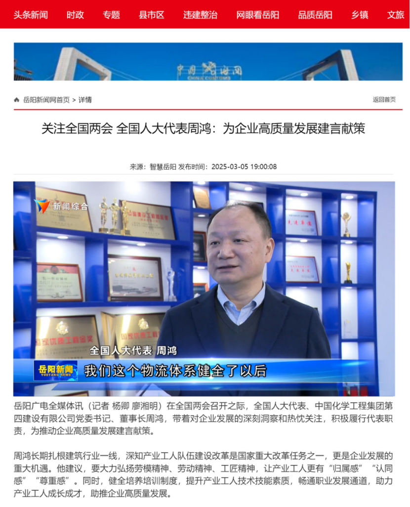 2025年全國兩會期間,全國人大代表,中國化學(xué)四化建黨委書記、董事長周鴻向大會提交《關(guān)于加強(qiáng)產(chǎn)業(yè)工人隊(duì)伍建設(shè)的建議》《關(guān)于多措并舉解決拖欠建筑施工企業(yè)工程款的建議》《關(guān)于推動洞庭湖區(qū)常岳九鐵路、荊岳鐵路、監(jiān)利至華容至益陽鐵路規(guī)劃建設(shè)提速的建議》《關(guān)于修改最高法院〈關(guān)于大型企業(yè)與中小企業(yè)約定以第三方支付款項(xiàng)為付款前提條款效力問題的批復(fù)〉的建議》等4條建議,受到主流媒體深入報道,引起社會各界廣泛關(guān)注。