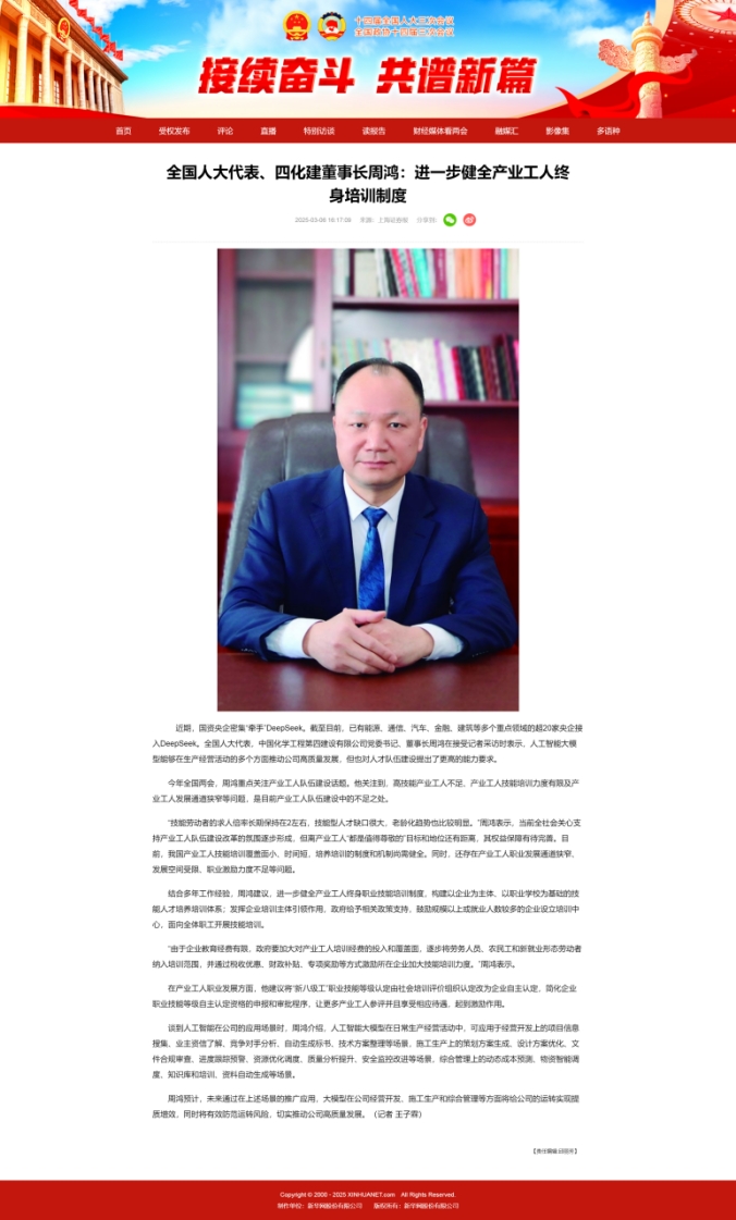 3月6日,新華網(wǎng)報道周鴻的建議:進(jìn)一步健全產(chǎn)業(yè)工人終身培訓(xùn)制度。