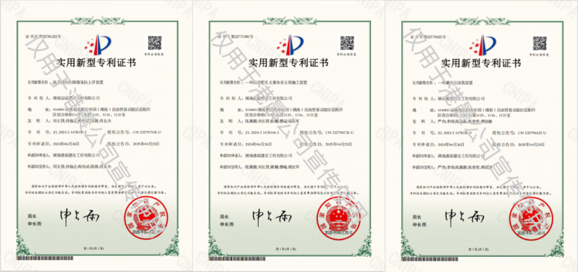 作為國家級高新技術企業,港晨公司始終將科技創新作為驅動高質量發展的核心引擎。近年來,公司通過持續加大科研經費投入、完善創新激勵機制、強化知識產權全流程管理等舉措,構建了“研發—轉化—保護—再創新”的良性循環體系,推動專利授權量實現穩步增長。此次獲批的3項專利聚焦智能建造與施工工藝優化領域,其中“灌注樁澆筑裝置”通過智能化控制提升混凝土澆筑效率與精度,“后澆帶無支架體系支模施工裝置”突破傳統支模工藝局限,實現綠色施工與成本優化,“鉆孔灌注樁鋼筋籠抗上浮裝置”則有效解決樁基施工中的關鍵技術難題,顯著提升工程安全性與可靠性。此次3項專利的落地應用,標志著港晨公司在施工技術研發體系化、專業化方面邁出重要步伐。
