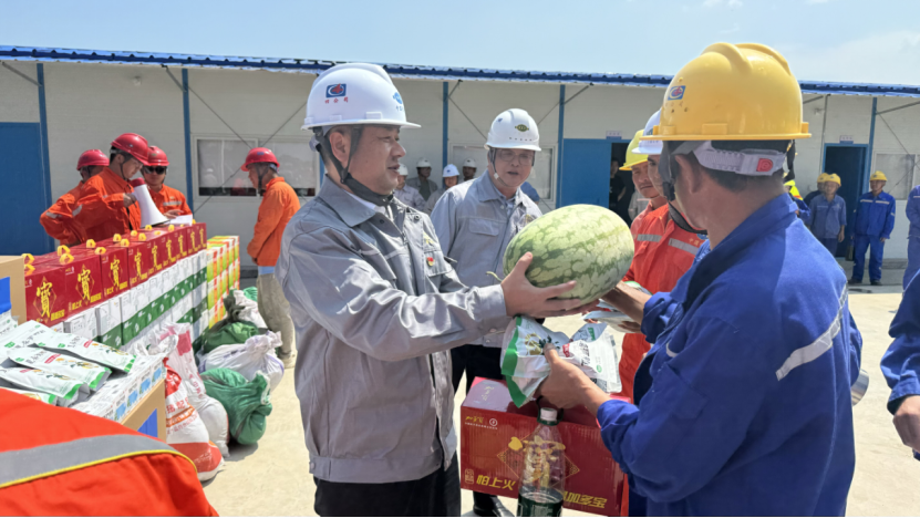 在項目現場,張勇向奮戰在施工一線的工人致以敬意和問候,向他們發放了礦泉水、清涼飲品、防暑藥品等慰問物資。他強調,安全是發展的前提,健康是幸福的基石,各級管理人員必須將員工生命安全與身體健康放在首位,壓實安全責任,強化現場管理,杜絕麻痹思想。工會組織要切實發揮橋梁紐帶作用,做實做細員工關懷工作,確保各項防暑降溫措施落地見效,保障人員平安度夏。