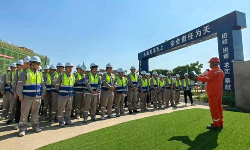 作為新員工入職培訓(xùn)的關(guān)鍵環(huán)節(jié),此次現(xiàn)場(chǎng)觀摩是課堂專業(yè)知識(shí)培訓(xùn)的重要補(bǔ)充,旨在幫助新員工將理論與實(shí)踐融合,提前感受“從教室到職場(chǎng)、從學(xué)生到職場(chǎng)人”的轉(zhuǎn)變。安全是進(jìn)入施工現(xiàn)場(chǎng)的第一課,在各項(xiàng)目現(xiàn)場(chǎng),安全經(jīng)理對(duì)新員工進(jìn)行入場(chǎng)前的安全交底,明確“安全第一,一切行動(dòng)聽指揮”的紀(jì)律要求,并特別提醒做好高溫防暑措施,筑牢安全防線。