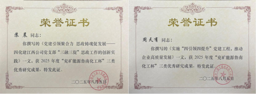 12月3-4日,在北京舉行的全國石油和化工行業思想政治工作交流會上,對2025年度“兗礦能源魯南化工杯”優秀研究成果進行了表彰。公司2篇政研論文分別獲評三類優秀研究成果,公司黨委宣傳部謝云輝榮獲“優秀通聯工作者”稱號。