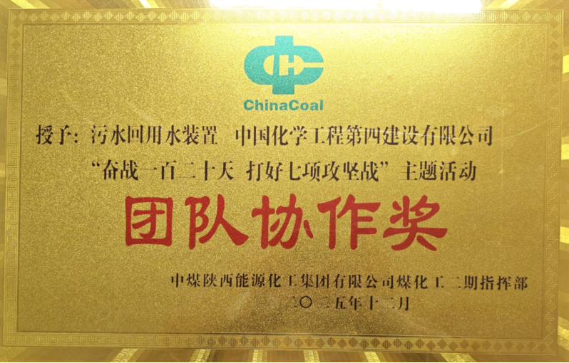 12月18日,中國(guó)化學(xué)工程第四建設(shè)有限公司黨委書記、董事長(zhǎng)周鴻到中煤榆林煤炭深加工基地項(xiàng)目檢查指導(dǎo)工作,并應(yīng)邀出席中煤陜西能源化工集團(tuán)有限公司煤化工二期指揮部組織召開的“奮戰(zhàn)一百二十天·打好七項(xiàng)攻堅(jiān)戰(zhàn)”主題活動(dòng)表彰會(huì)暨2025年工作總結(jié)會(huì)。在表彰會(huì)上,公司中煤榆林項(xiàng)目部憑借攻堅(jiān)期間的優(yōu)異表現(xiàn)與突出貢獻(xiàn),榮獲“團(tuán)隊(duì)協(xié)作獎(jiǎng)”。