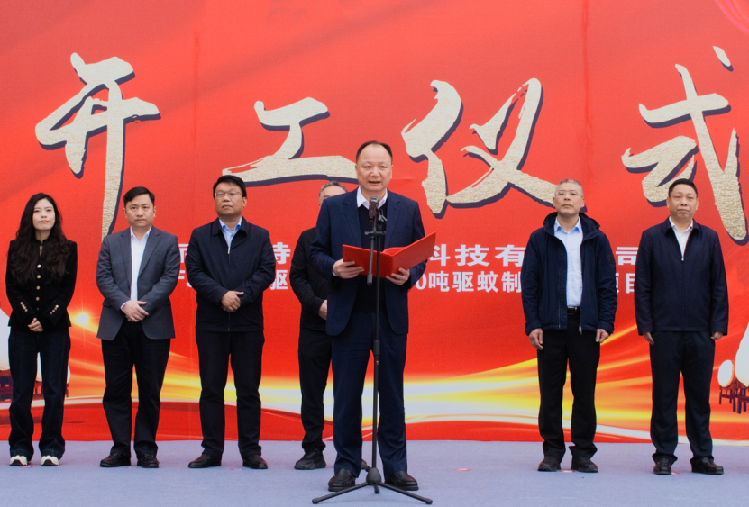 3月16日,鏑特新材料年產3500噸驅蚊原藥及500噸驅蚊制劑建設項目開工儀式在郴州永興縣全民創新創業園舉行。湖南鹽業集團黨委書記、董事長馬天毅出席并宣布項目開工,中國化學工程第四建設有限公司黨委書記、董事長周鴻,郴州市永興縣委書記賓心華出席并致辭。