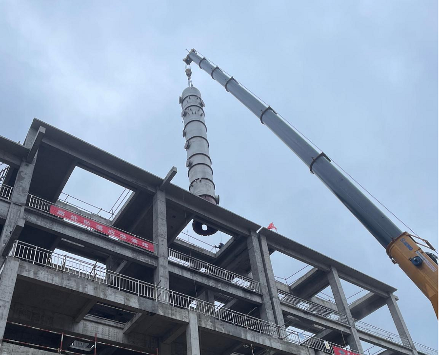 此次首臺重25噸、高19米的廢水解收塔完成吊裝,標志著開磷PPA項目部新年第一吊順利完成,也由此正式拉開了項目安裝工程序幕。此批設備共計36臺,計劃于1月30日安裝完成。接下來,項目施工人員將繼續堅持奮戰,為業主交付一份滿意的答卷。