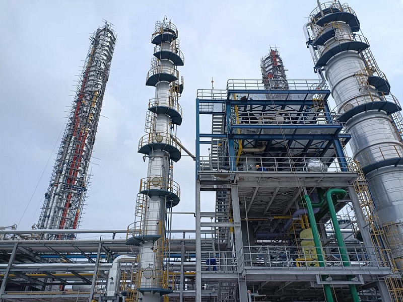 該合成氨裝置作為30萬噸/年己內酰胺的配套裝置,在產業鏈上將為己內酰胺生產降低成本、提高市場競爭力。東北公司承建的合成氨變換、脫硫脫碳及液氮洗裝置工程自2021年3月開始土建施工,當年9月土建交安,共歷時16個月建設完成。
