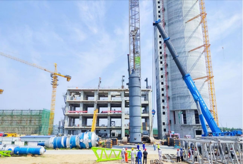 華北公司河南晉開(kāi)延化項(xiàng)目大型設(shè)備吊裝就位