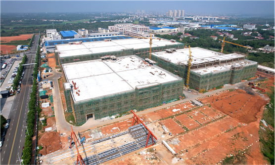 該項目自2023年9月8日啟動基礎施工以來,項目團隊精心策劃、精益管理,積極組織開展大干活動,克服暴雨與高溫等不利影響,安全完成高支模框架施工。施工中,為優質高效推進項目建設,項目部自建雙T板預制場,確保雙T板的施工質量、材料運輸得到控制;優化雙T板吊裝方式,有效加快施工進度,節約施工成本,項目按期實現封頂,得到了業主的高度肯定。